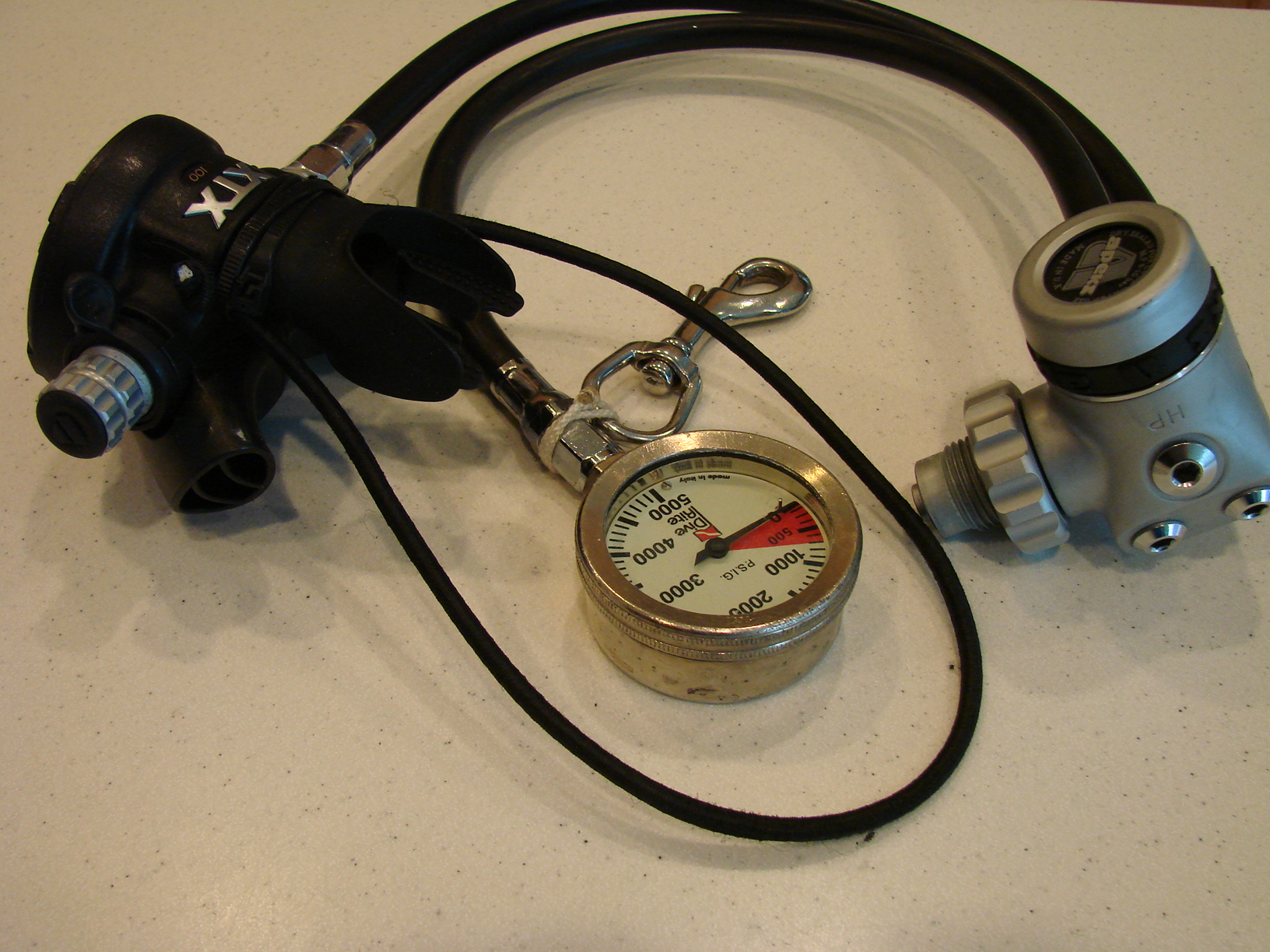 -Purchased new Dec 2008,Used for 40 dives and have been in A/C Storage for the last 5 months. Tested in Pool and the regulators are 100% functional. The Left Post regulator does have a tiny barely noticeable bubble that creeps out of the 1st stage from the bottom every 20-30 seconds. I highly suggest you have both regulators serviced before use. It could be just an adjustment that is needed best bet is to have them checked out.