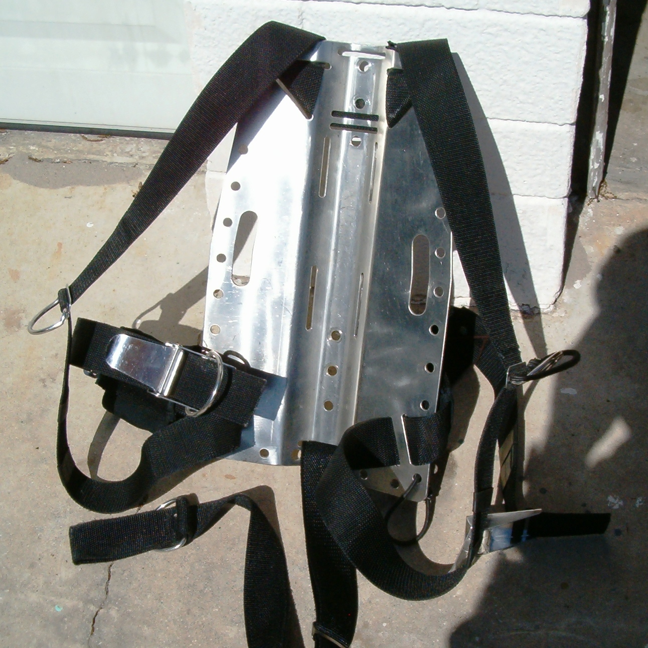 Due to a back injury thats not going away anytime soon I am selling my XL Stainless Steel Fed Tagge backplate. The plate is 18 inches long comes with harness, SS Belt buckle , 2 chest , 2 hip D rings included. I can personally say this plate is really comforatable for someone in the 6'2 to 6'5 range or someone that is long in the torso such as me. I really hate to let this go but it looks like I'll be a sidemounter from now on ( unless I get a tank monkey really really cheap to lug those doubles!)