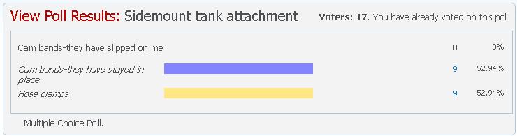 What type of attachment do the majority of people use for sidemounting. I find it interesting that most people use hose clamps for deco bottles and stages,but use cam bands for sidemounting. I have experienced enough failures that I have eliminated cam bands for hose clamps.