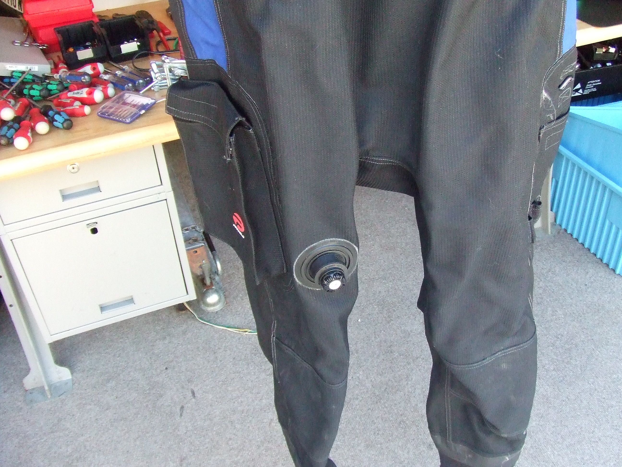 I have used this suit on literally 5 dives and have decided I like diving wet far better. Zipper wax and seal saver applied prior to each dive and storage. Comes with the bag. The suit has all options available from Pinnacle, pockets, d-ring on left leg pocket, pee valve (never used). Size 11 soft boots.