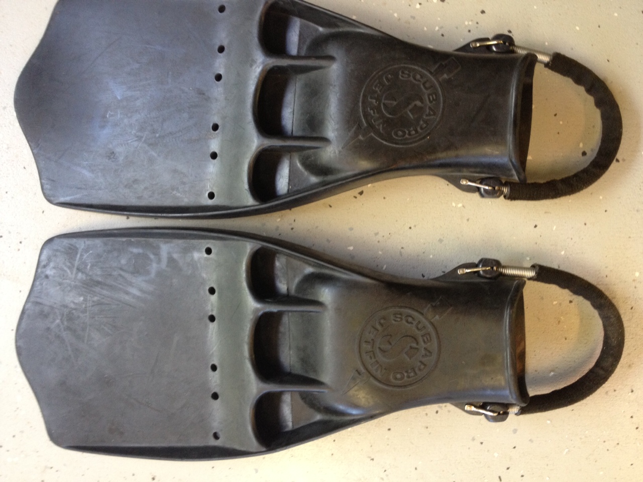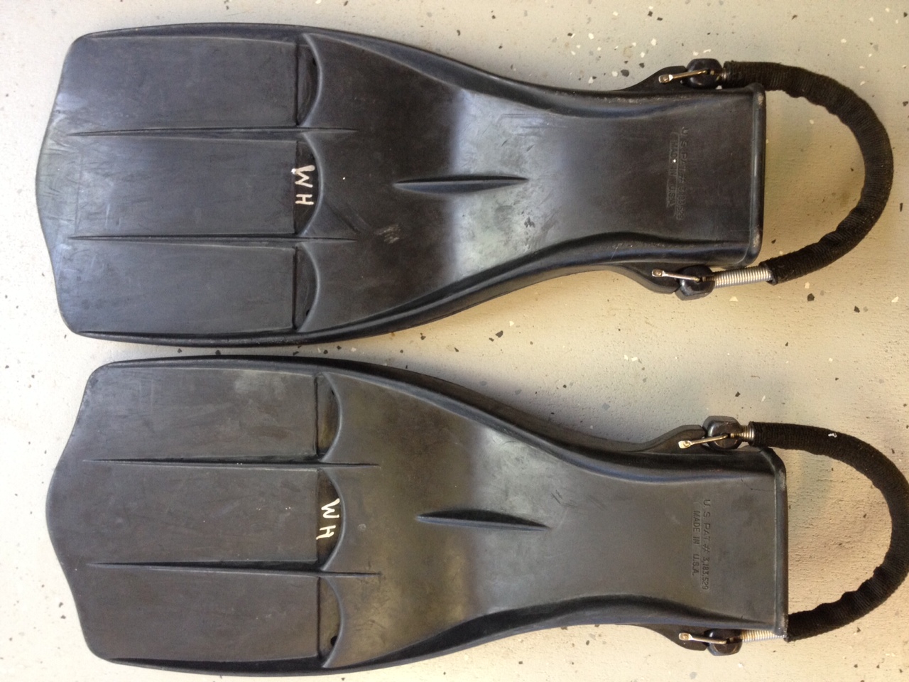 Used Jet Fins, XL with universal spring straps. I bought these used and the size was wrong for me, so I've never used them myself. They have "WH" on the bottom, as seen in the photo. In good condition. Asking $40 plus shipping.
