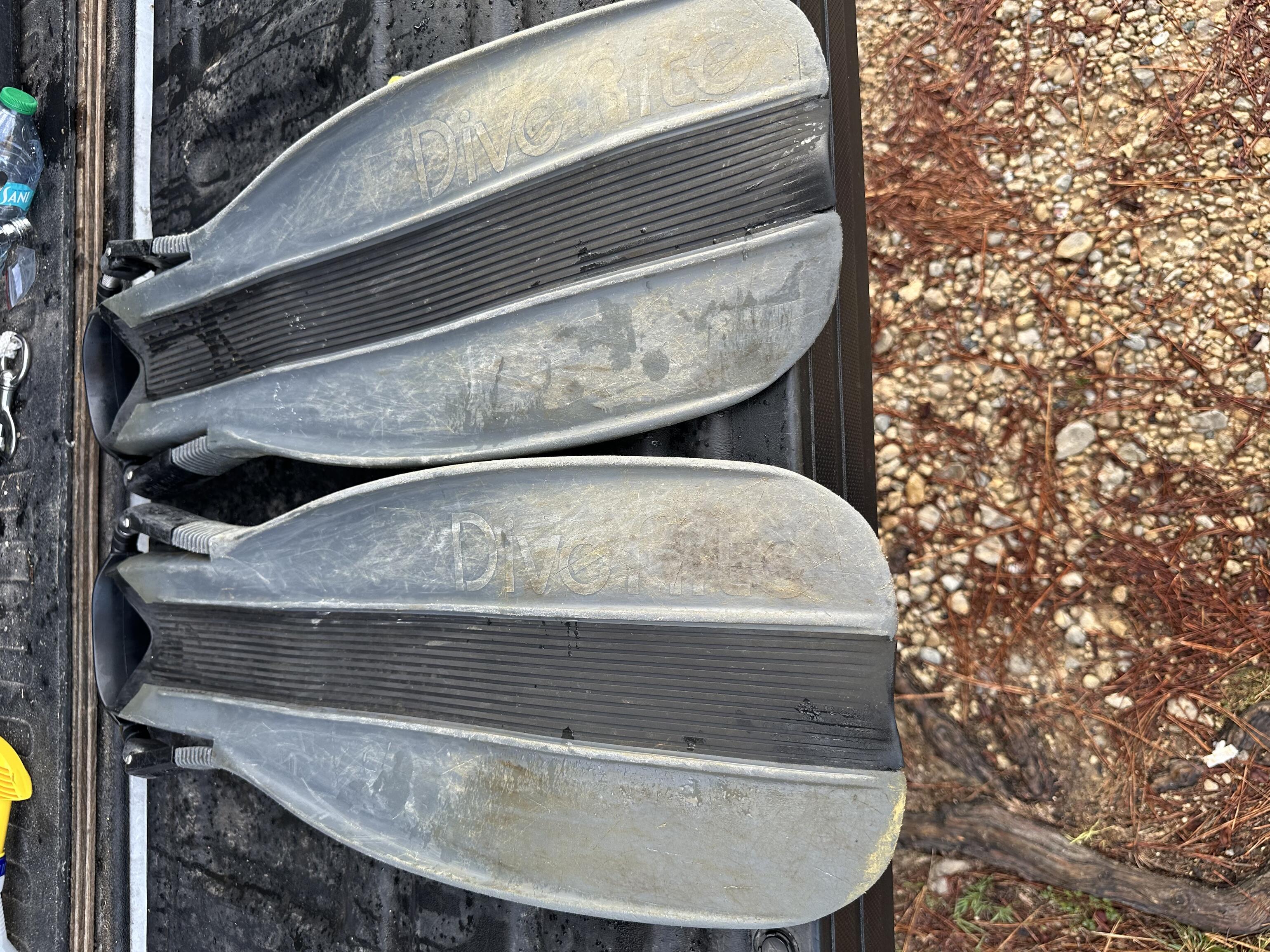 Ginnie Springs: Black Dive rite fins, red helmet, and wetsuit hood